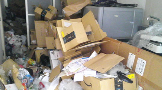 貴重品の捜索をしながら不用品やゴミを梱包して搬出します。